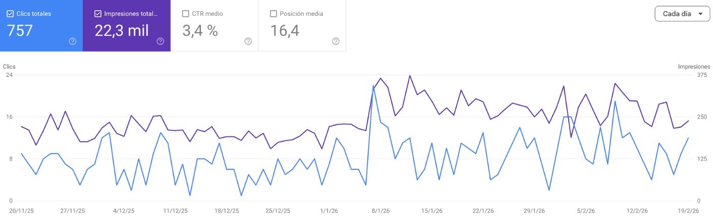 Datos reales extraídos de Google Search Console. Periodo: últimos 3 meses.
